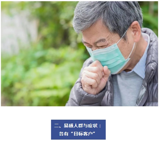 流感病毒:“无差别攻击”,各年龄段人群都可能中招。它的特点是来势汹汹,常导致突发高热(39-40℃)、怕冷、头痛、全身肌肉酸痛、乏力等严重的全身症状,而咳嗽、流鼻涕等呼吸道症状反而不是最突出的。