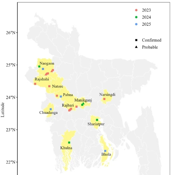 过去几年里,印度及孟加拉国陆续报告过零星病例和小规模聚集。