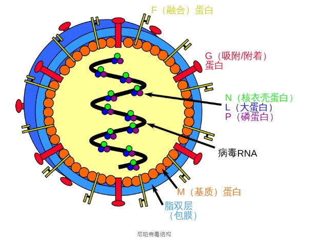 该病毒属于副黏液病毒科亨尼帕病毒属,是一种RNA病毒,与引起马匹和人类急性呼吸道感染的亨德拉病毒密切相关。