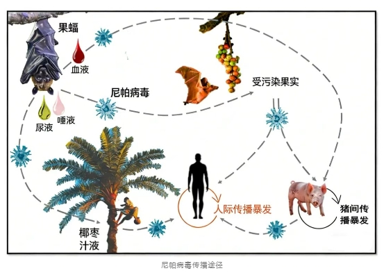 2025年,我国学者在云南省生活于村庄附近果园中的果蝠体内,发现了两种与尼帕病毒高度相关的新病毒。