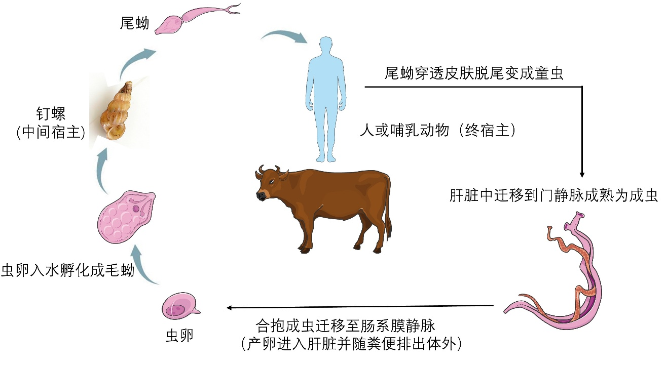 可感染人体的主要有日本血吸虫、曼氏血吸虫、埃及血吸虫等。
