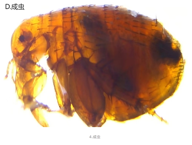 4.肉眼可见快速跳动的深褐色小虫(跳蚤成虫)。