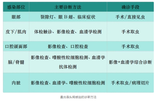 曼氏裂头蚴病的临床误诊率可高达57.7%,其主要原因是医生对该病了解不足,缺乏足够警惕。仅进行常规血液检查因缺乏特异性也难以确诊。当医生意识到“可能是寄生虫感染”时,往往已经过了数月甚至数年,期间患者可能多次复发且病情加重。