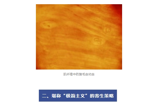 旋毛虫的生活史极其简单,不需要土壤、媒介或中间宿主等完成生活史,而能在同一宿主的不同部位完成“变身”。