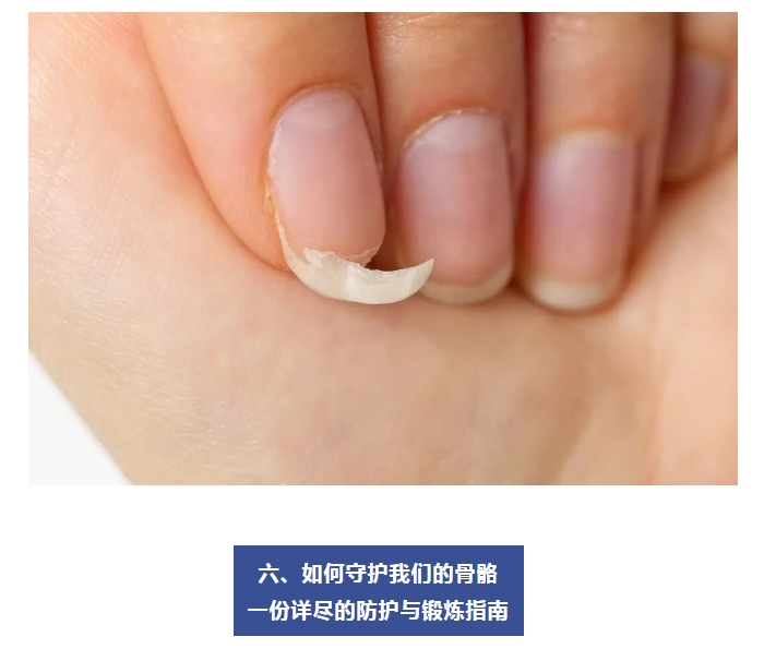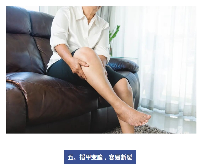 如果发现自己的指甲在平时不易断裂的情况下,突然变得薄脆、容易劈裂、有纵行条纹,这可能暗示着身体钙质和构成骨骼、指甲的基础材料——胶原蛋白正在流失。虽然指甲变脆不能直接确诊骨质疏松,但它可以作为一个提醒您关注整体骨骼健康的辅助信号。