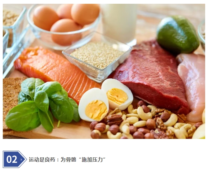 3.优质蛋白质:它是肌肉和骨骼的“钢筋混凝土”。摄入不足会影响骨基质的形成。确保每日从肉、蛋、奶、豆制品中摄取足量蛋白质(1.0-1.2 克/千克体重)。